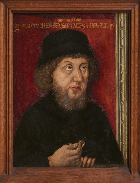 Abb. 1 Michael Wolgemut, Porträt des Hans Tucher, Öl auf Holz, 1481 (Leihgabe der Tucher Kulturstiftung im Museum Tucherschloss und Hirsvogelsaal, Museen der Stadt Nürnberg, HI Gm 001, Foto: Uwe Niklas)
